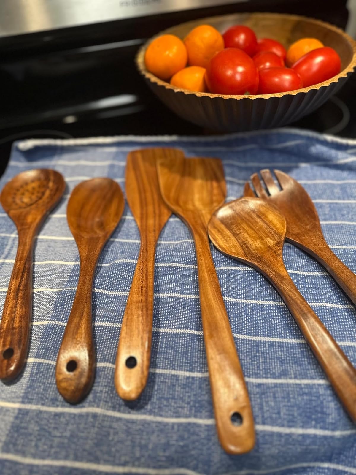 Let's be honest—hiding ugly plastic utensils in a drawer feels defeating. These hand-polished teak beauties feature natural wood grain patterns that turn your countertop into a showpiece. Reviewers say guests constantly ask where they got them. One customer even calls them "a game changer in my new world of culinary adventure." When your tools look this good, you actually want to cook.